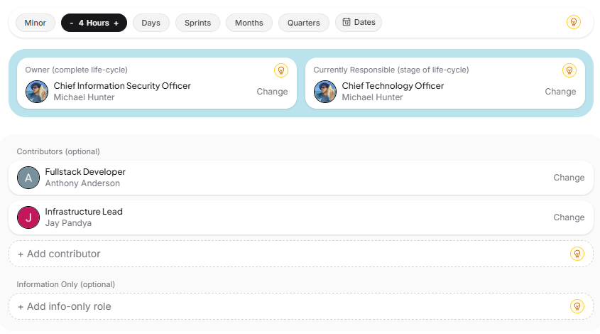 In 0Pro, capabilities, objectives, and tasks are owned by Roles, while people are assigned to those Roles. The work and knowledge stay with the role, even as people come and go.